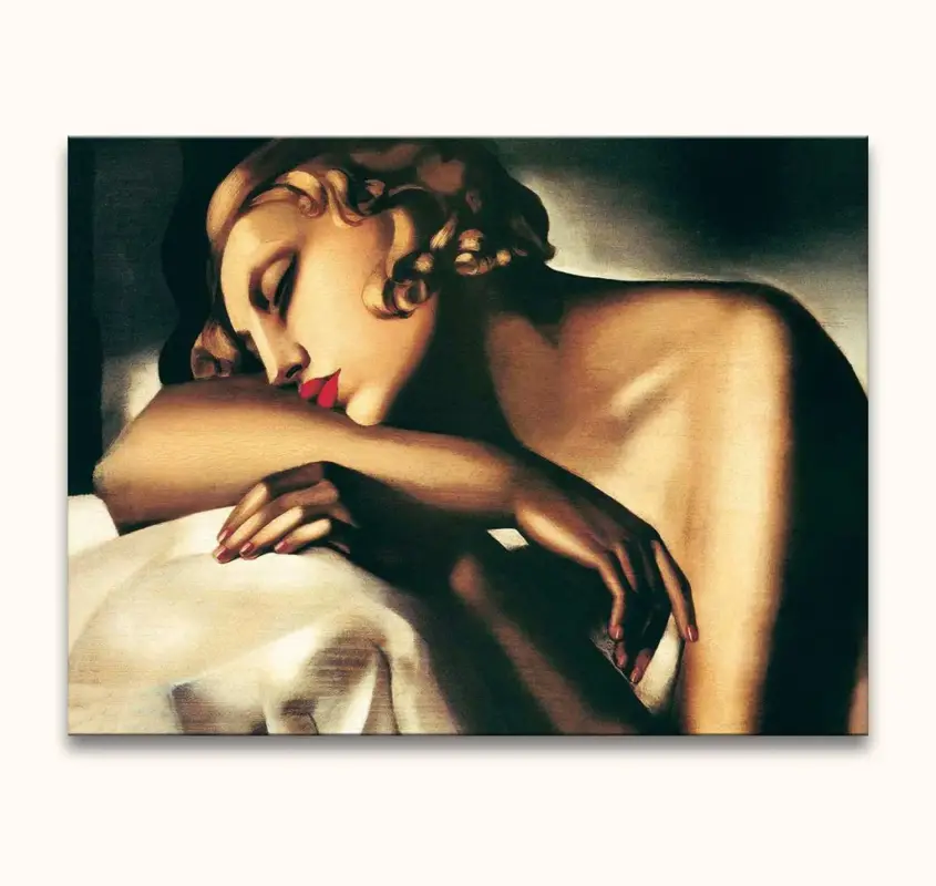 Handgeschilderd schilderij ‘The Sleeper’. Olieverfschilderij van hoge kwaliteit waarbij een slapende vrouw door middel van moderne schilderkunst is afgebeeld.