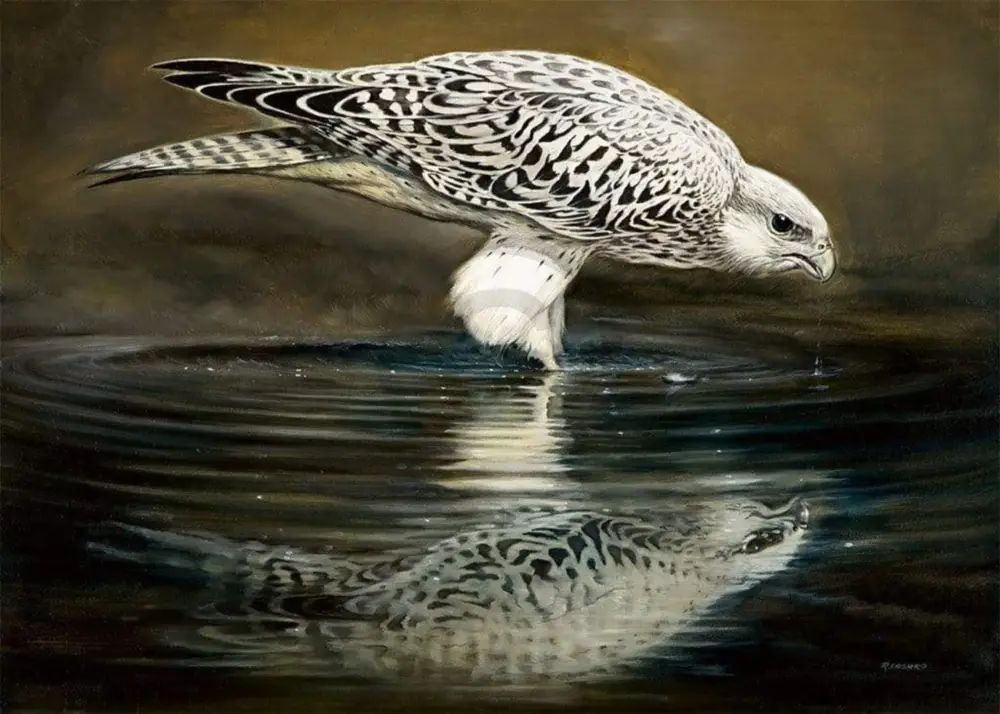 Deze prachtige kunstdruk van Renato Casaro – Drinking Falcon 70x50cm brengt direct sfeer in je interieur. Dankzij de haarscherpe printkwaliteit springt dit werk echt van de muur. Een stijlvolle eyecatcher die zonder twijfel de aandacht trekt in elke kamer.
