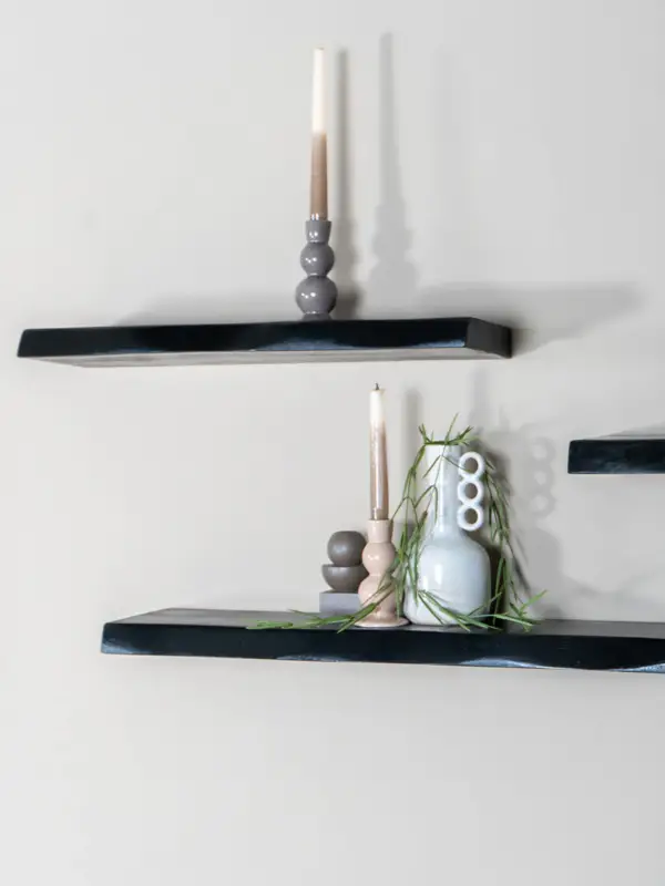 - Vanwege de zwarte kleur van het hout past de wandplank in elk interieur