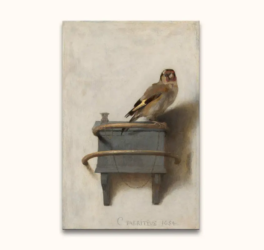 Handgeschilderd olieverfschilderij ‘Het Puttertje van Fabritius’ van Carel Fabritius. Olieverf portret van hoge kwaliteit waarbij een puttertje door middel van barokke schilderkunst is afgebeeld.