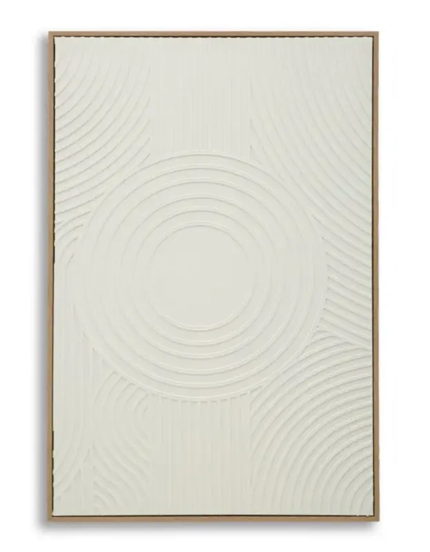 Schilderij op canvas met een gouden lijst met zachte lijnen en delicate texturen die een elegant en ontspannend effect creëren. Een schilderij dat eenvoud verheerlijkt als een vorm van essentiële en verfijnde schoonheid. Afmetingen: 80 x 120 x 3,8 cm.