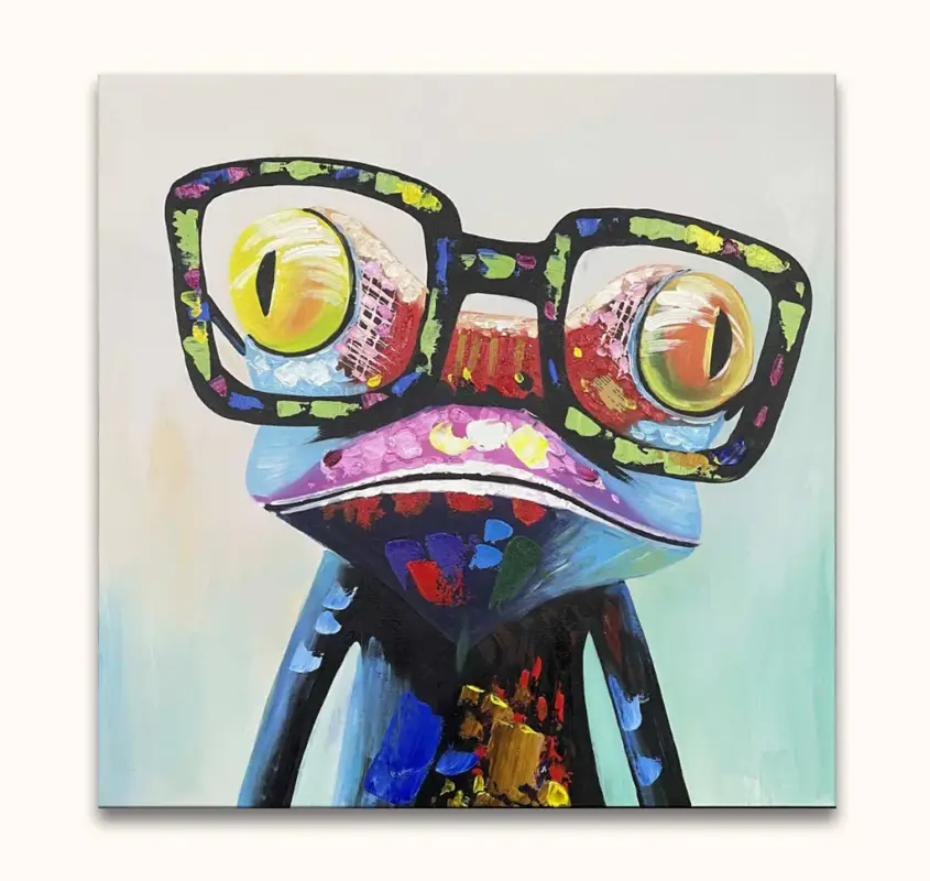 Handgeschilderd olieverfschilderij ‘Wise Frog’. Olieverfschilderij van hoge kwaliteit waarbij een kikker door middel van impressionistische schilderkunst is afgebeeld.