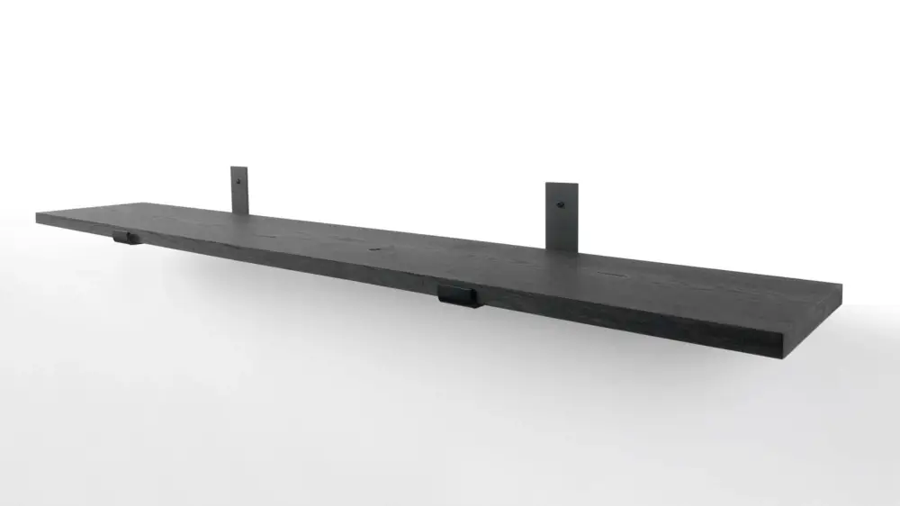 Woodbrothers Eiken wandplank zwart 60x20cm + zwarte dragers Solde